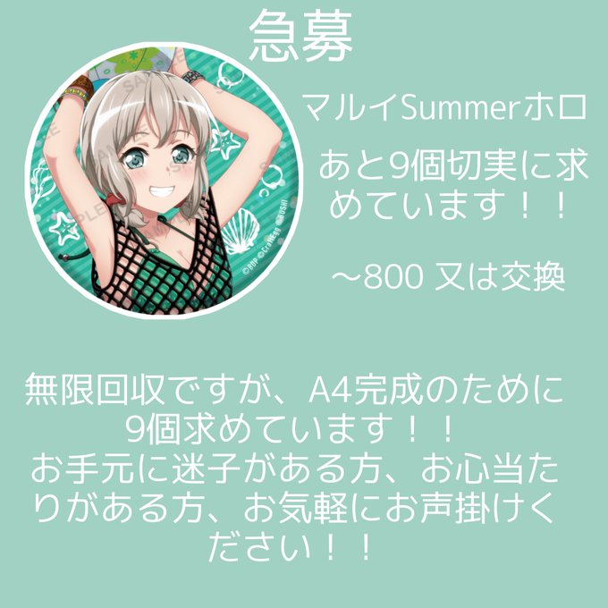 ------------------急募----------------- マルイSummerホロ缶バッジをA4完成の為、あと9個切実に求めております🙇♀️🙇♀️ お心当たりある方、もしくは中古屋で見かけたらお声掛けください!!