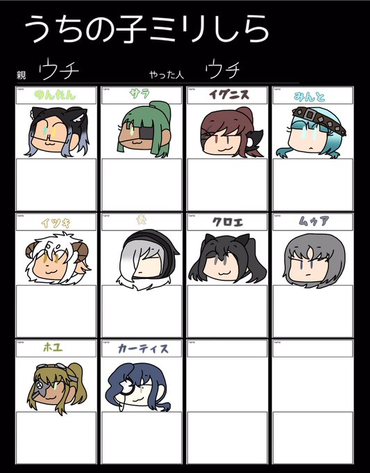 #うちの子ミリしら 便乗です(疲れた) 2枚目は説明です(雑い)