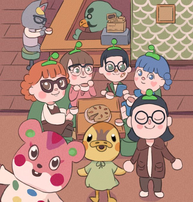 Omg look at what Lana @WanderwoodGame drew! It’s the Bobble Head Coffee Gang! So cute!!! Love the addition of the little villagers too 💖 @Cooperside1 @timesnewromary @surfnturfs