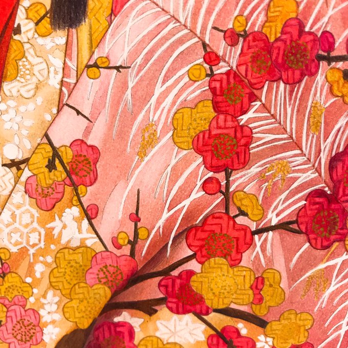 ちまちま塗ってた和柄完成しました✨ 黒×緑×紫でシックで大人っぽい雰囲気にしてみました♪