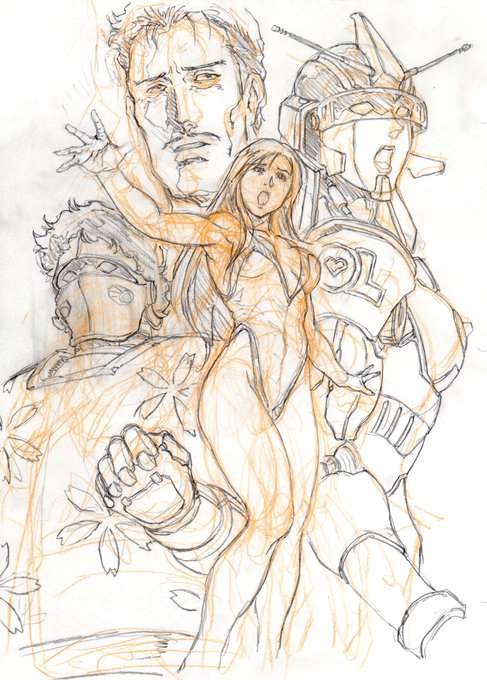 @sora0079 ファーストのブライトさんと言うことでしたので、そのつもりで描いてみました(と、言っても資料などみてないのであくまでも私の思うイメージです)。鼻の横の処理など劇場版前後あたりのイメージにしたつもりです。ラフで申し訳ないのでとりあずアポロンさんも描いてみました。