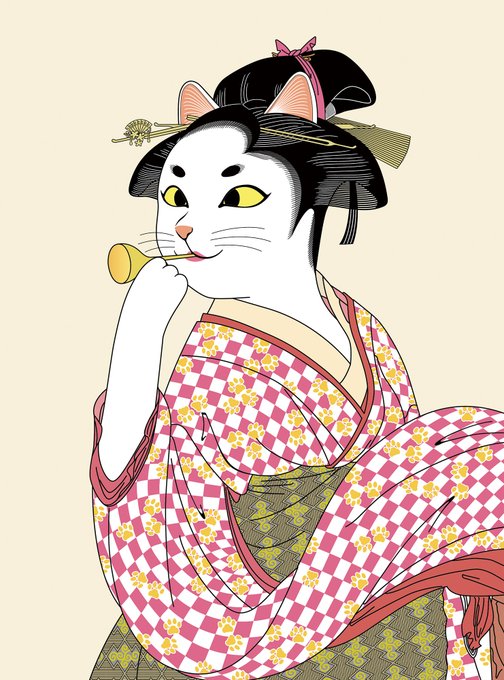 ビードロを吹く猫娘 #猫 #ネコ #イラスト #猫化 #Tシャツ #パロディ #浮世絵 #ビードロを吹く娘 https://t.co/5eB6H1QT9P