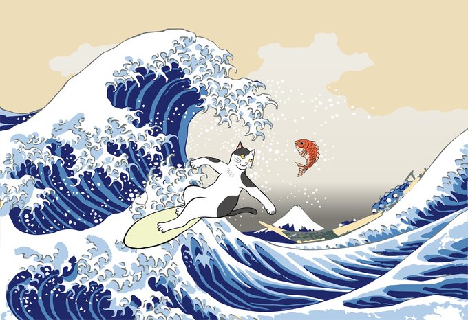 波乗り猫 #オリジナル #猫 #ネコ #浮世絵 #富嶽三十六景 #波乗り #サーフィン https://t.co/DwhjtrXBYe