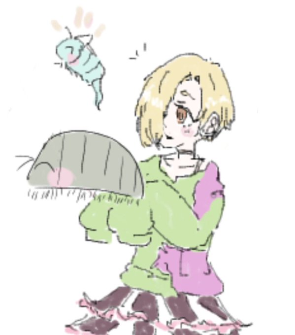 またんごむさん絵チャ だんごむしを持つ小梅ちゃん
