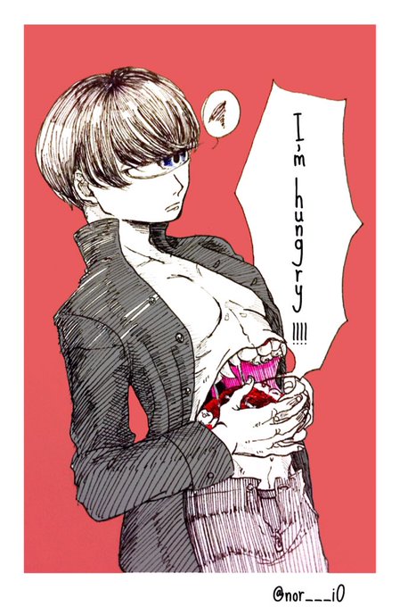 #単眼版深夜の真剣お絵描き60分一本勝負 題「単眼」 せんせー、お腹がうるさくて授業受けれません