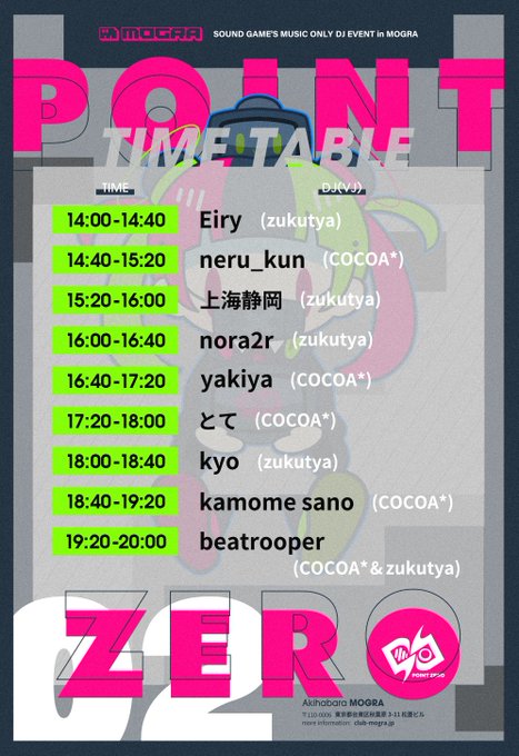7/18(月・祝) 14時から秋葉原MOGRAさんにて開催のクラブイベント #POINT_ZERO 02 、DJ出演いたします!
