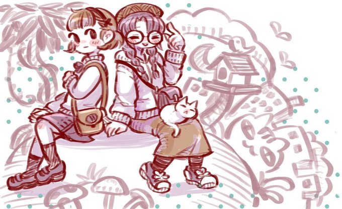 左(夕多丸さん @nekopopolon )右(ノラ)の合作絵🧑🎨🖌️