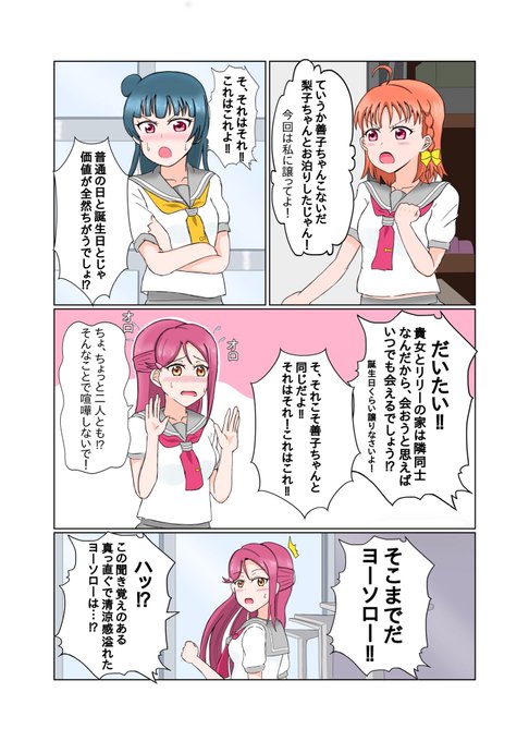 梨子ちゃん総受け大好き人間なのですが、ようよしちかが梨子ちゃんを奪い合って最終的に梨子ちゃんにまとめて説教される展開が一番好きです←