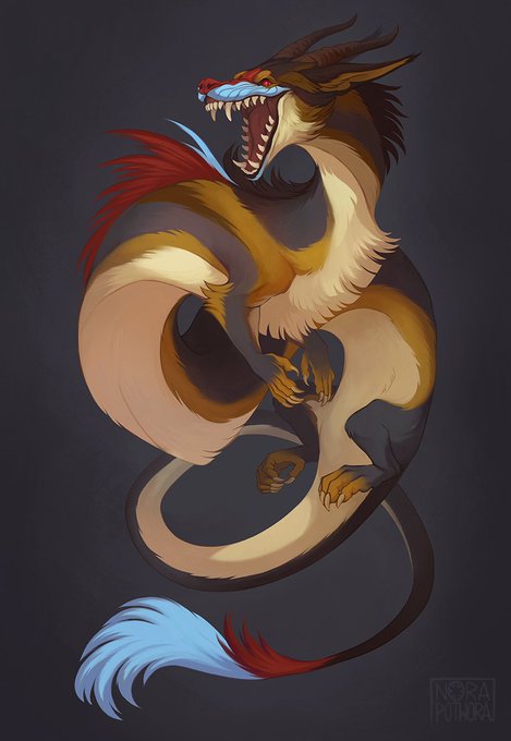 Eastern dragon form of PilafiaMadness character. This one was really, really nice to work on! Lately, however, I feel a bit drained because of various reasons, so now it's time for a little break and branches sketching~