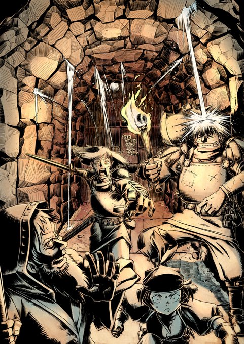 公式お題が「LEAK(水漏れ)」 TRPGだとダンジョンの行き止まりとか、GMが罠をしかけたくなりますよね。水圧で崩れる罠に気づき逃げる一行。ちょっとごちゃごちゃしすぎたなぁ