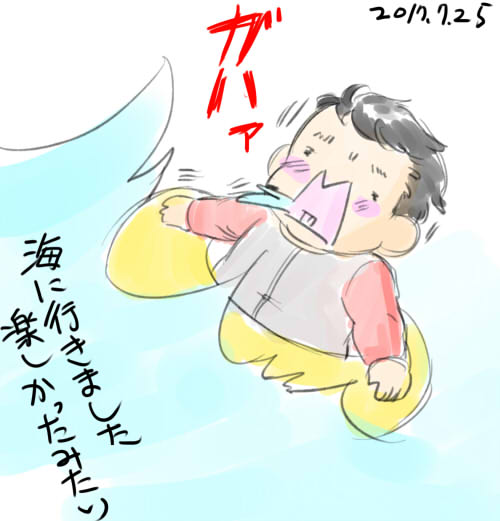 7/25の「げんきえにっき」 砂浜に頭から突っ込んだり波にさらわれたり