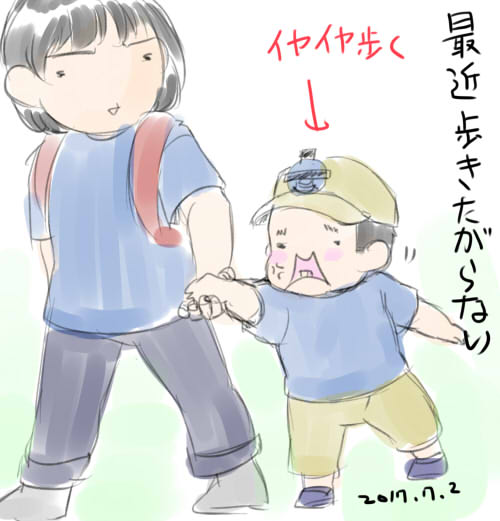 きょうの「げんきえにっき」 保育園行くときもベビーカーを要求。拒否すると大の字泣き