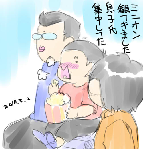 今日の「げんきえにっき」 ポップコーンめっちゃ食べてた・・・大丈夫かな・・・ 面白かったです。親子でミニオンファン