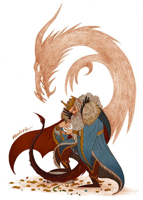 A new drawing of #Thorin, suffering from Dragon-sickness.