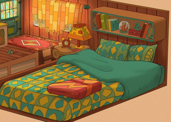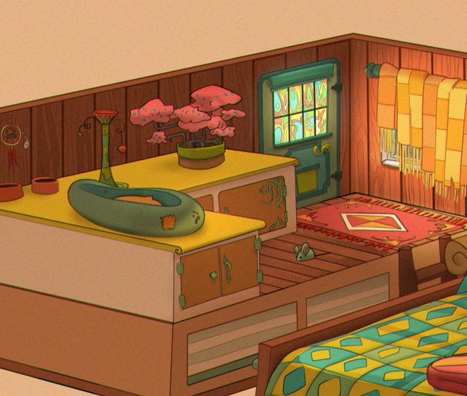 What do we do after a long hard day of jungle hiking? We hit the hay and have a big ol' snooze. This is the top floor of the caravan from #SnackyAlchemy it is also home to the cat nook and is the go to place to recharge batteries! #vizdev #bgart #propdesign #bgdesign