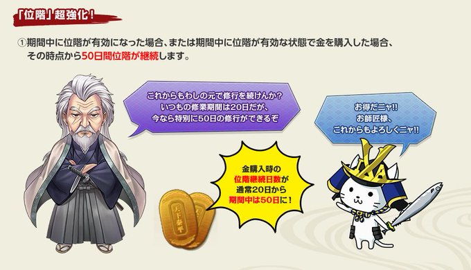🔸位階を有効(更新)にすると通常20日のところ50日継続
