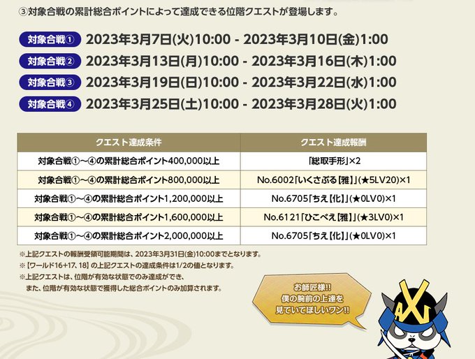 イベント限定の位階クエストが登場中もく