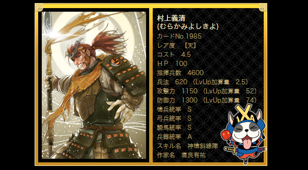 スクウェア・エニックスのオンラインゲーム 【 戦国IXA 】では歴戦の武将や姫達が美麗イラストのカードとして登場 毎月新たなカードも追加されています 11月分で追加された中の一人をご紹介もく② 「砥石崩れ」で信玄を二度も破った信濃の豪族【 村上義清 】#戦国IXA #村上義清 #直良有祐 #追加武将