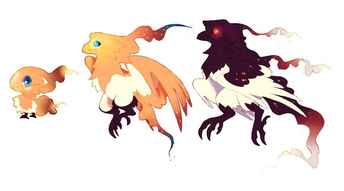 Went through my files and remembered that I made these 3 fakemon starter lines, and I figured I'd post them again since the new game is coming out soon! There's a fire/dark phoenix/reaper, a water/fairy sea dragon, and a grass/ghost deer druid!