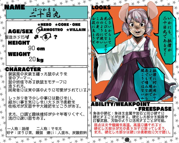 こちらの企画(@Re_BORN_HERO)に八人目失礼致します。鼠のアーマーです。宜しくお願いします!