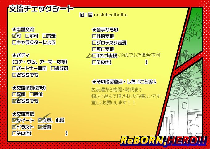 こちらの企画(@Re_BORN_HERO)に十五人目失礼致します。