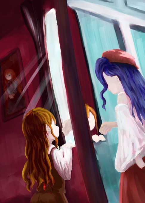 箱入り娘と使用人の目を抜け出して連れ出そうとするお転婆な娘です、早速おうちから離れようとしています。 楽しいものとは外にしかないのでしょうか?いや、きっと彼女たちはこの瞬間こそが最も楽しい時なのでしょう。 (絶賛箱入り中な時に描きました) #おうちで楽しむ楽園合同