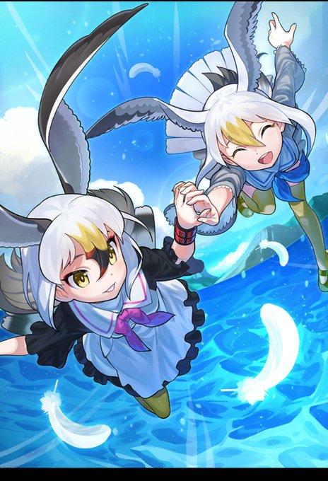 ウミネコちゃんとカモメちゃんかわいい カラータイツも良いけどカモメちゃんのふともももえっちだし組み合った手も良いよね…