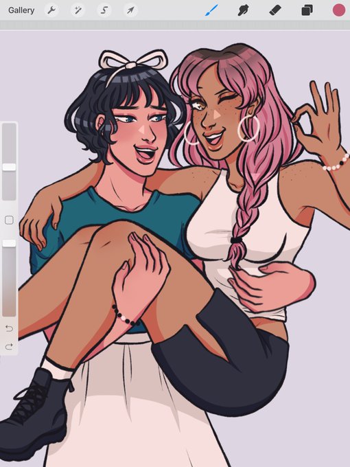 hyunjae and her gf amelie! #oc amelie (pink hair) belongs to @makisoup