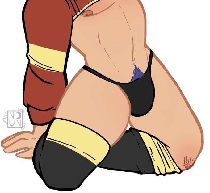 Whenever I draw a character in sexy stockings, it’s an Art Trope of mine to just, have one of them falling down. I like to have fun.