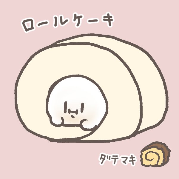 ロールケーキの日だったそうなのでおもちinロールケーキ🍰 地味に誕生日だったのでコンビニでケーキ買って食べたらいささか胸焼けしています🤔 伊達巻好き。 #イラスト #きもちのおもち #今日は何の日 #ロールケーキの日