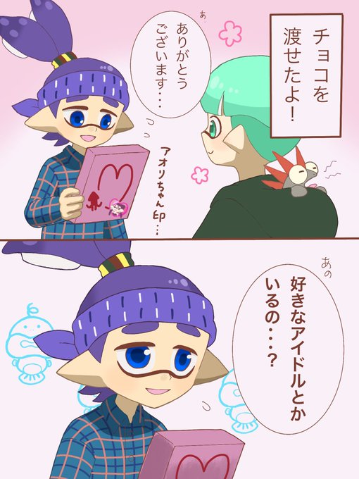 ここなつさん(@K_liSL )宅のオタイカくんをひたすら描きたかった4コマ😭✨✨ バレンタインの続きです! スイトくんプレゼント受け取ってもらえて良かったね☺️ https://t.co/jDjegQjEML