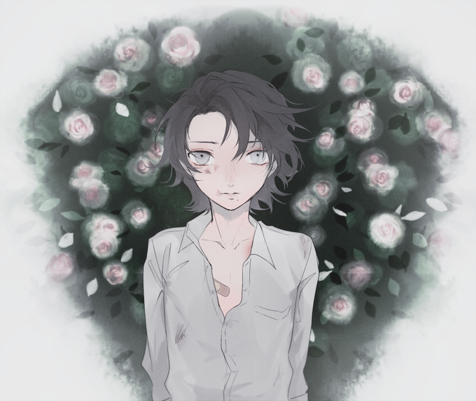 「薔薇」 「絆創膏」 「オッドアイ」 #美少年版深夜の真剣お絵描き60分1本勝負 遅刻と過去お題の詰め込み失礼いたします…