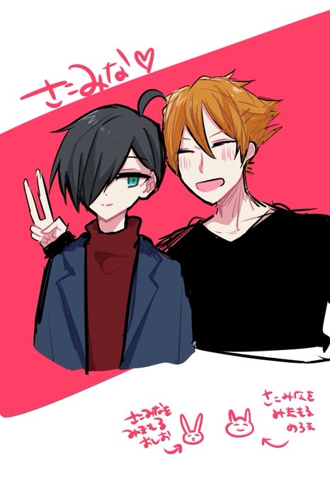 そういえば週末おしおさんがさこみなを描いて色塗ってくれたんだよね(佐古は私) 見守るしおとのろま