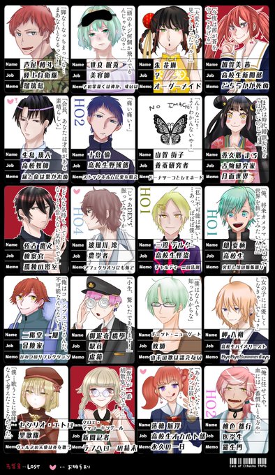 2018.8.29〜現在までの探索者まとめ!です!KPCとか抜いて44人 たくさんいる…色んな子がいるから遊んでください🥰ロスト探索者は7人!