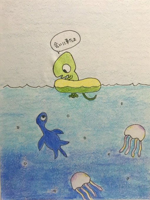 今日のお絵かき 海の友達に逢いに来たよ #お絵かき #イラスト #カメレオン #プレシオサウルス