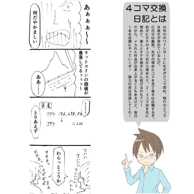 2018.04.17 4コマ交換日記 『ラットコインだけに』 #4コマ #4コマ漫画 #4コマ交換日記 #漫画家志望 #漫画 #illustration #イラスト