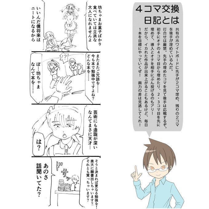 2018.04.13 4コマ交換日記 『素直』 #4コマ #4コマ漫画 #4コマ交換日記 #漫画家志望 #漫画 #illustration #イラスト