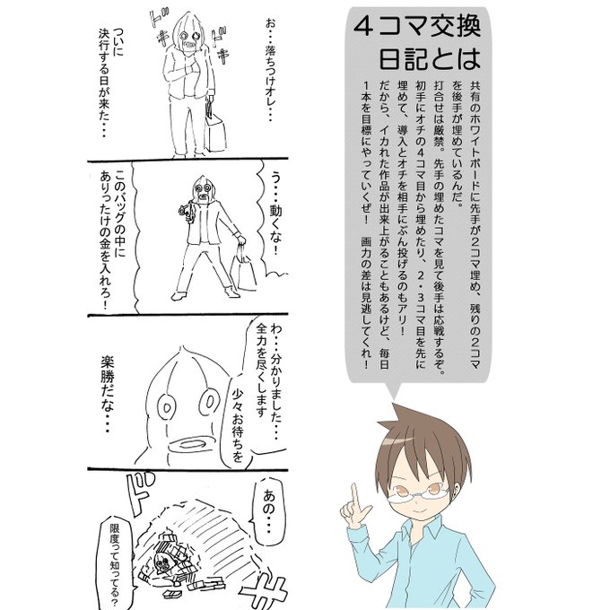 2018.03.20 4コマ交換日記 『翌日彼はハローワークへ行ったそうです。』 #4コマ #4コマ漫画 #4コマ交換日記 #漫画家志望 #漫画 #illustration #イラスト