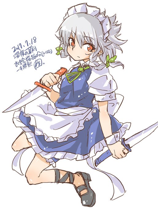 ロリっぽい咲夜さん。そーい。 #深夜の真剣お絵描き60分一本勝負