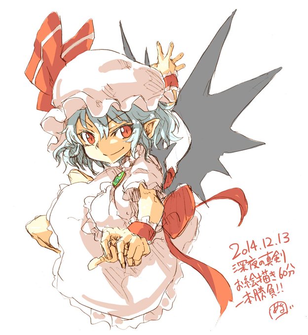 ワンドロで東方のレミリア。アナログ線画はやっぱ楽しいと思いました。そーい。 #深夜の真剣お絵描き60分一本勝負