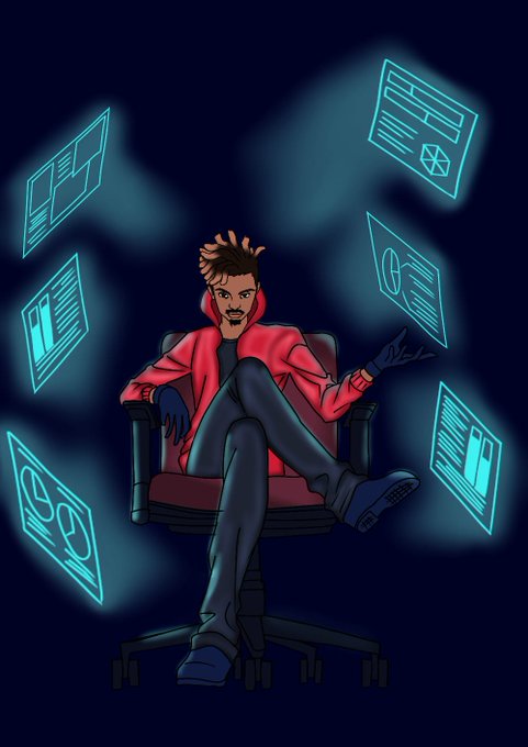 New concept art on the left/1st panel by @Destiny_ara_ara of my hacker character Kagi. Some of my newer followers might not know but I based his appearance and persona on the late rapper Juice WRLD. Always a huge inspiration, I wanted to honor him in that way. #999