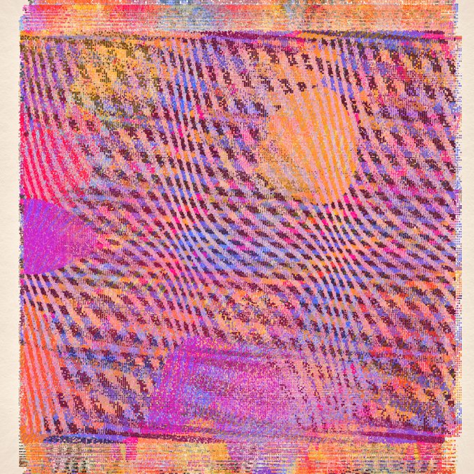 Yesterday wasn't very productive 🫣. Here are 3 variations and 1 underpainting view (it shows quickly, and the rest is painted over it in about a minute). I'm aiming for an EOM release. #wip #generativeart #creativecodeing #genartclub #codeart #madewithcode