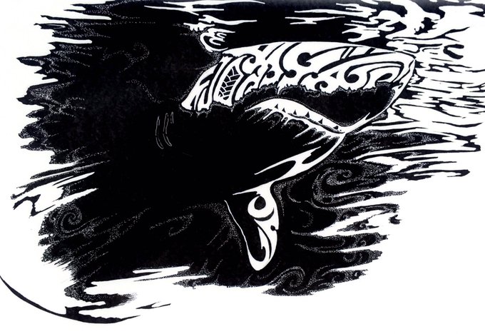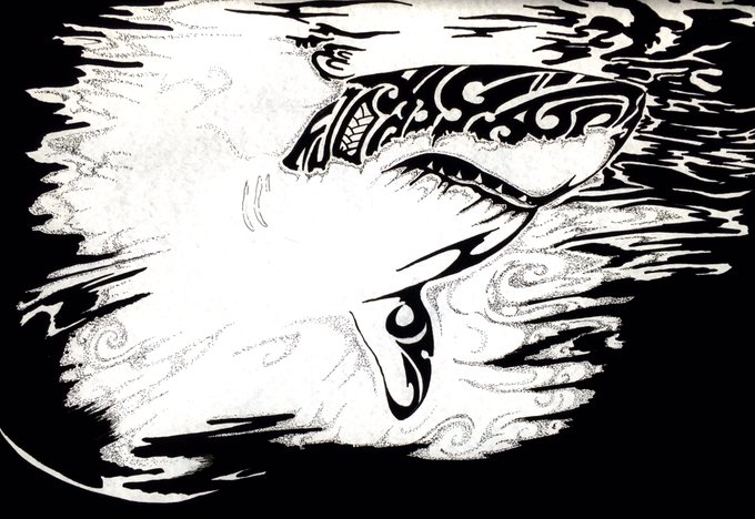 Great white shark ある特定の海域に生息するホオジロザメは 水面下より 海上に向け飛ぶように狩りをする。 #Tattoo #タトゥー #Tribal #トライバル #鵺右衛門 #デザイン #design #仕事募集