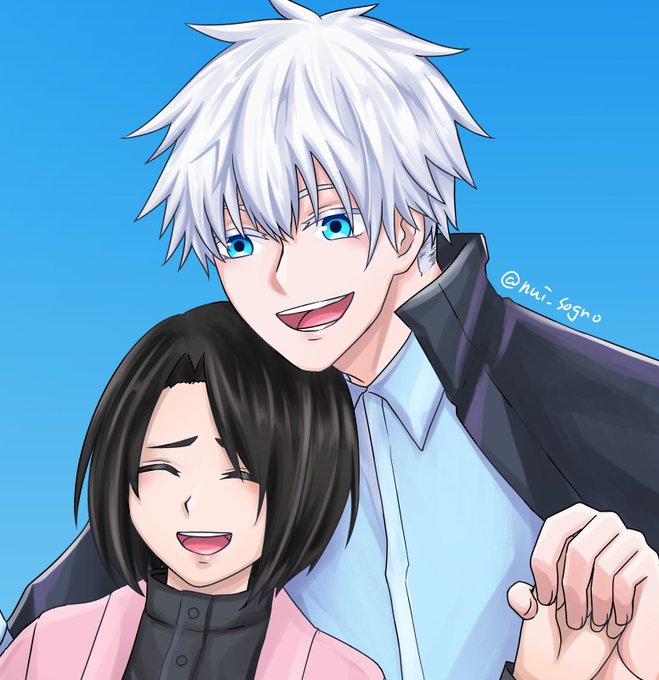 某映画見たあとの五と夢主が例のシーンをやってみた。2枚目は素顔差分 ※夢主容姿あります #じゅじゅプラス
