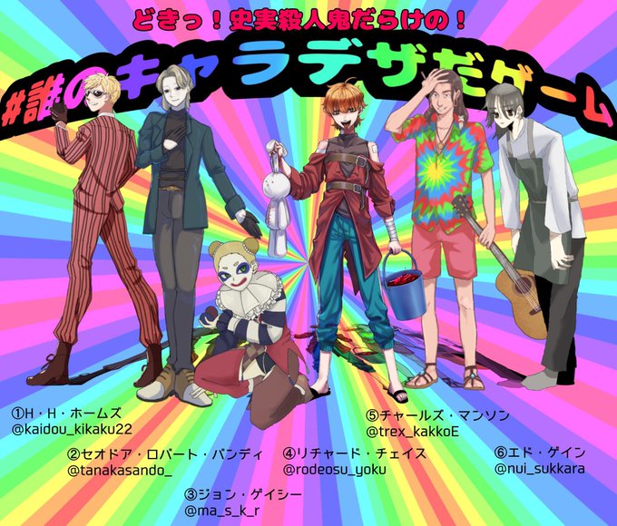 すみません💦ミスあったのでも上げ直し失礼します💦💦 殺人鬼誰デザインゲームに参加させていただきました! よろしければ投票お願いします! 私は6番を描きました😄