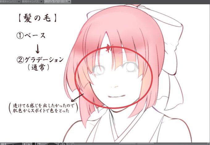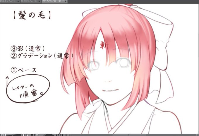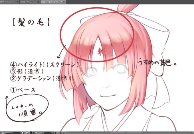 @v2cristo_gm わたしの1番苦手なところ突くんだね君もwwその時の塗りによって異なってしまうことはあるけど主流としてはコレかなぁ。。。(前の桜碌ちゃん再活) ちなみに、乗算の連続で色を塗るとくすみやすいのでオーバーレイなどで彩度を調整するといいみたい👀✨‹ざっくりスマン