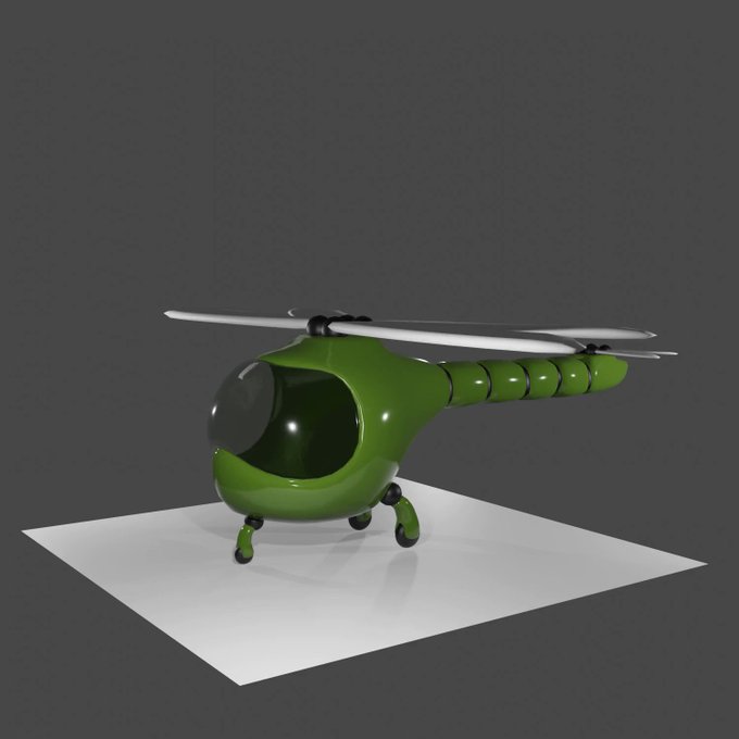 トンボコプター進捗、ボーンを入れて離陸時に変形できるようにしてみた。ちなみに足の部分は結局納得できなくて以前の四つ足ロボの足をコピペして付けることにした