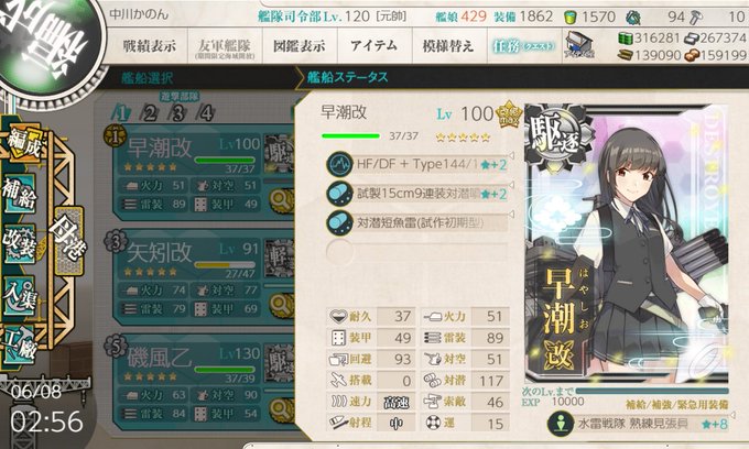 ネジの消耗を考えるとB型改四☆4の方(☆4までネジ24個必要)が三連装後期(☆4までネジ12個必要)より多いが、実用性を考えればやはり三連装後期ってことで