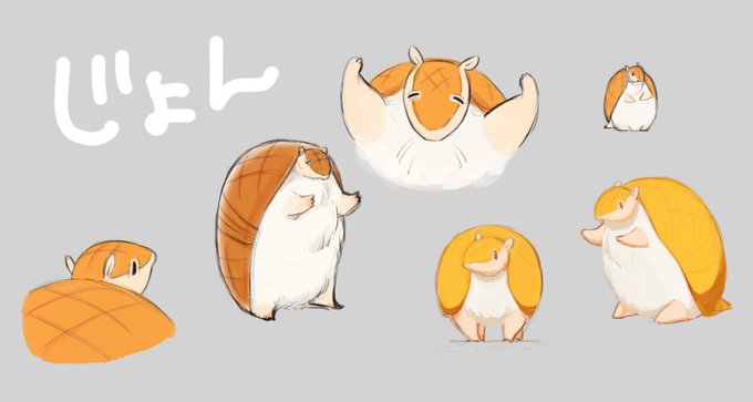 これはアニメとかほぼ日アルマジロとかのジョンをゆる模写して練習した軌跡。アニメのEDの明るい色使いかわいくて好き。