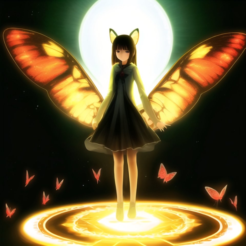 extra eyes,standing on magic circle, floating flying fire beautiful butterfly beasts,stylish,sadness nervous,gusping,princess,shiny skin,masterpiece,slender,cute,fashionable,{{realistic}},loli